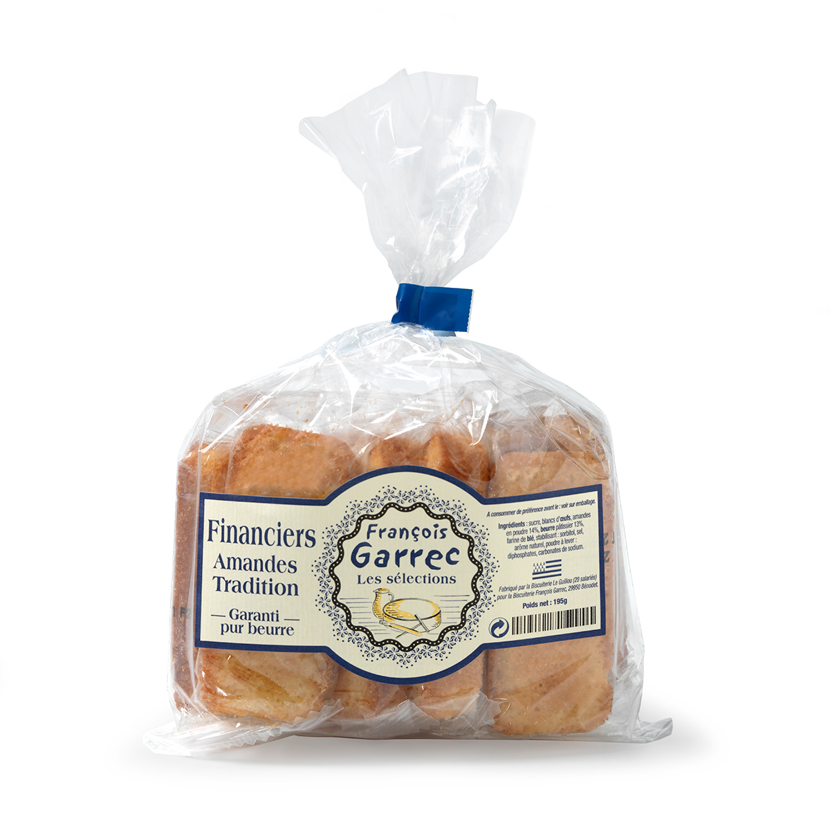 Sachet de 8 financiers traditionnels aux amandes. Aussi disponible en lot de 3 sachets.