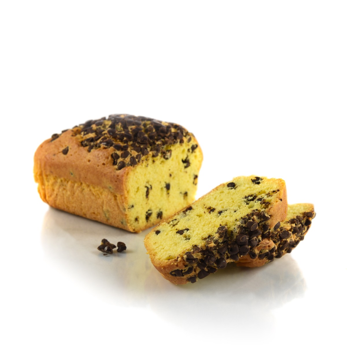 Tendre et moelleux, ce quatre-quart aux pépites de chocolat est fabriqué à la main dans notre atelier, à base de produits frais et locaux.